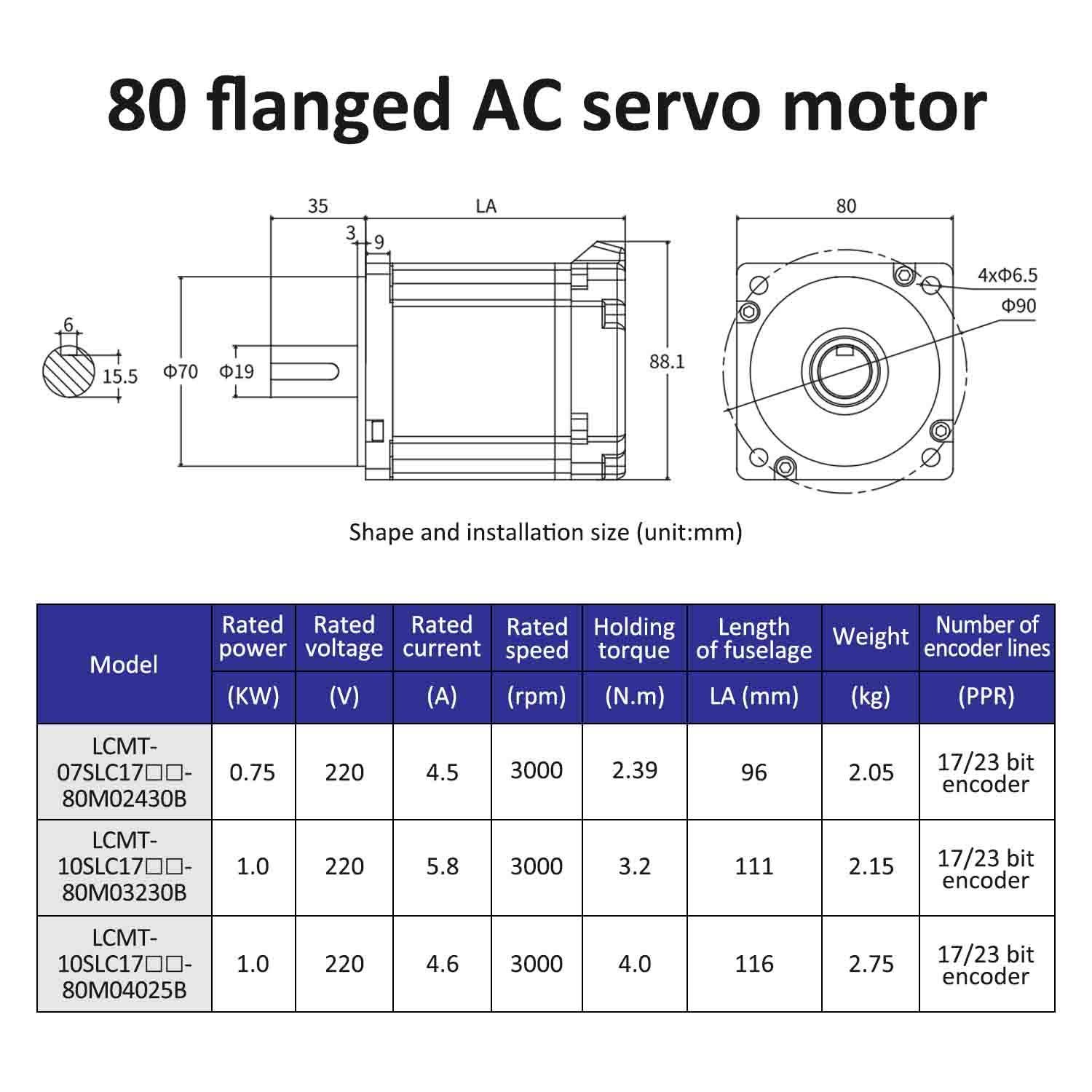 | Modelo de motor | LCMT-07SLC17-80M02430B | LCMT-10SLC17-80M03230B | LCMT-10SLC17-80M04025B |