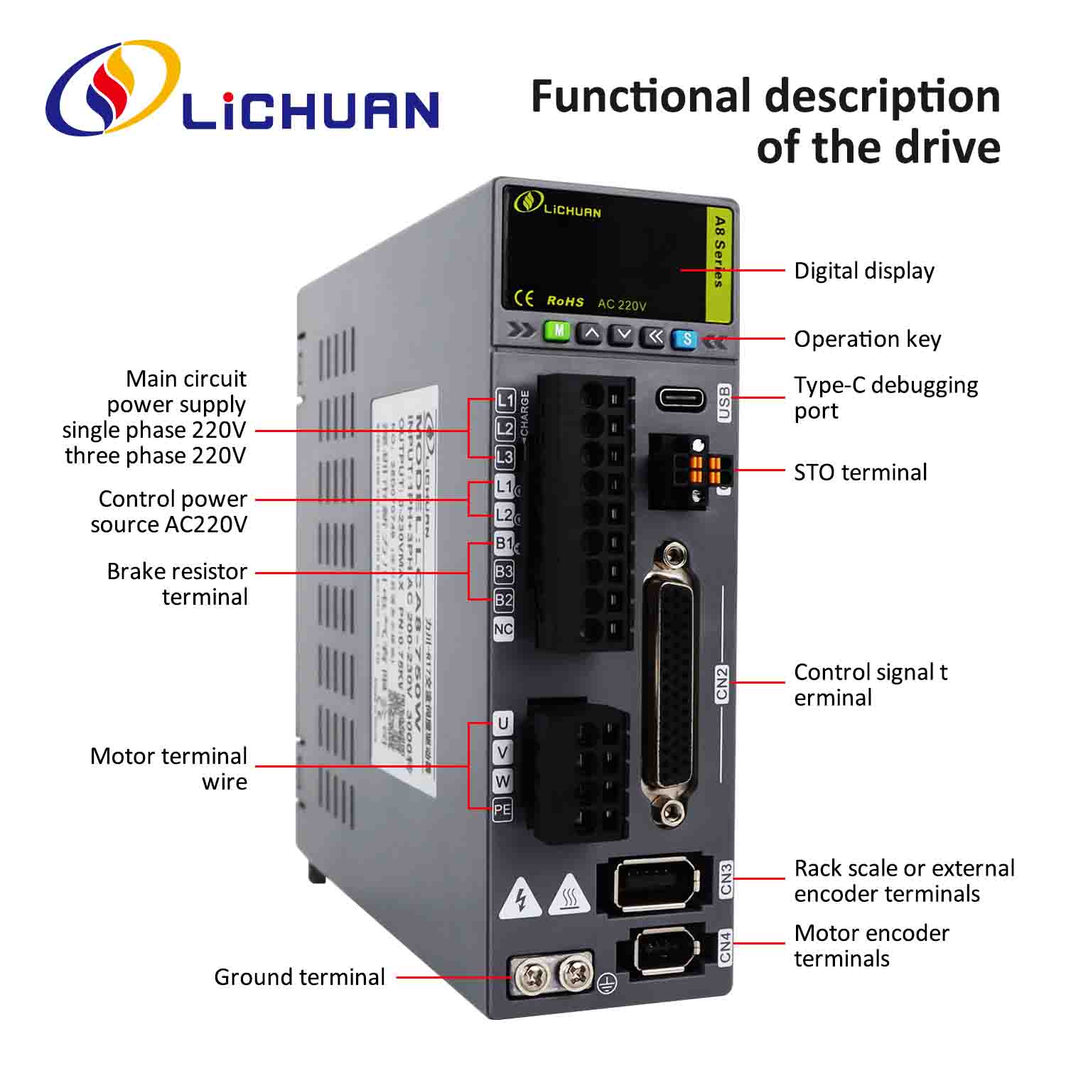 ElKit de controladores de servomotor AC STO ABZ de alta precisión Lichuan A8Incluye un servosistema completo con las siguientes especificaciones: