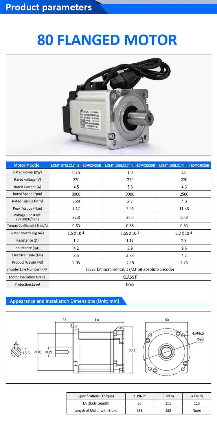 | Modelo de motor | LCMT-07SLC17-80M02430B | LCMT-10SLC17-80M03230B | LCMT-10SLC17-80M04025B |