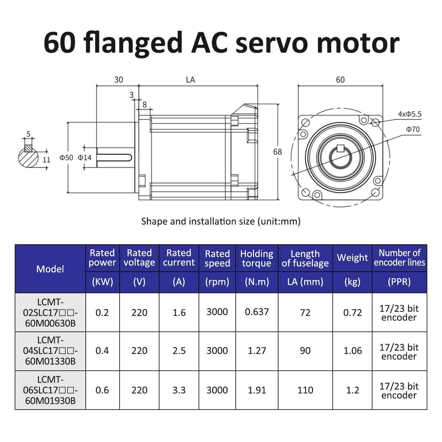 | Modelo de motor | LCMT-02SLC17-60M00630B | LCMT-04SLC17-60M01330B | LCMT-06SLC17-60M01930B |