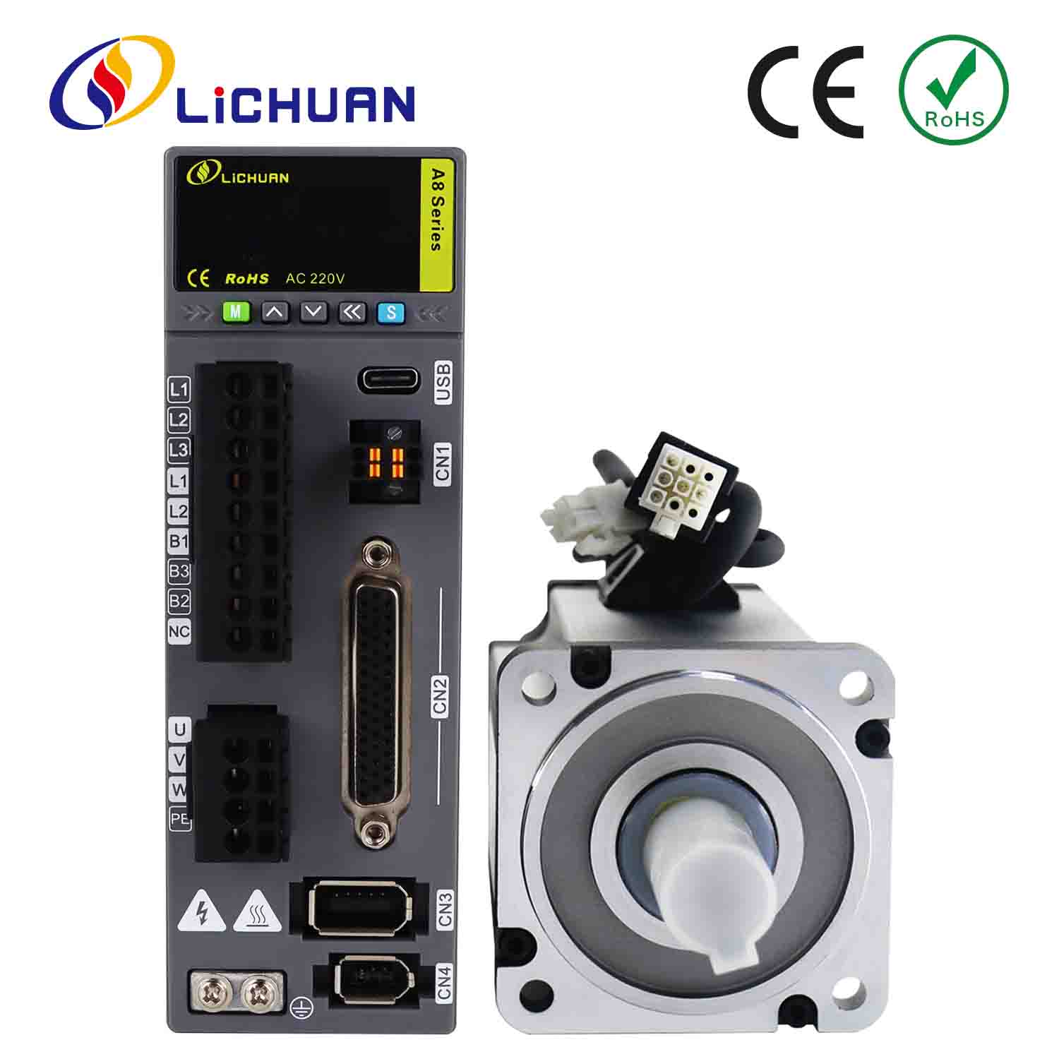 Lichuan AC Servo Motor Drivers Kit A8 Alta Precisión STO ABZ 200W 0.637N.m 220V 1.6A 3000RPM IP65