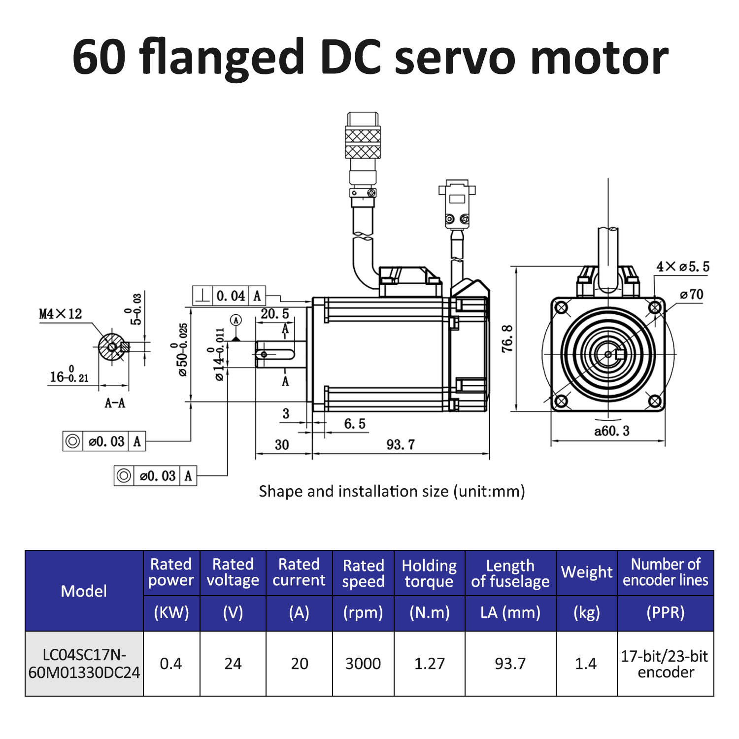 Kit de controladores de servomotor CC de bajo voltaje Pulse/RS485/CANopen/EtherCAT 60 con bridas 200W/400W/600W